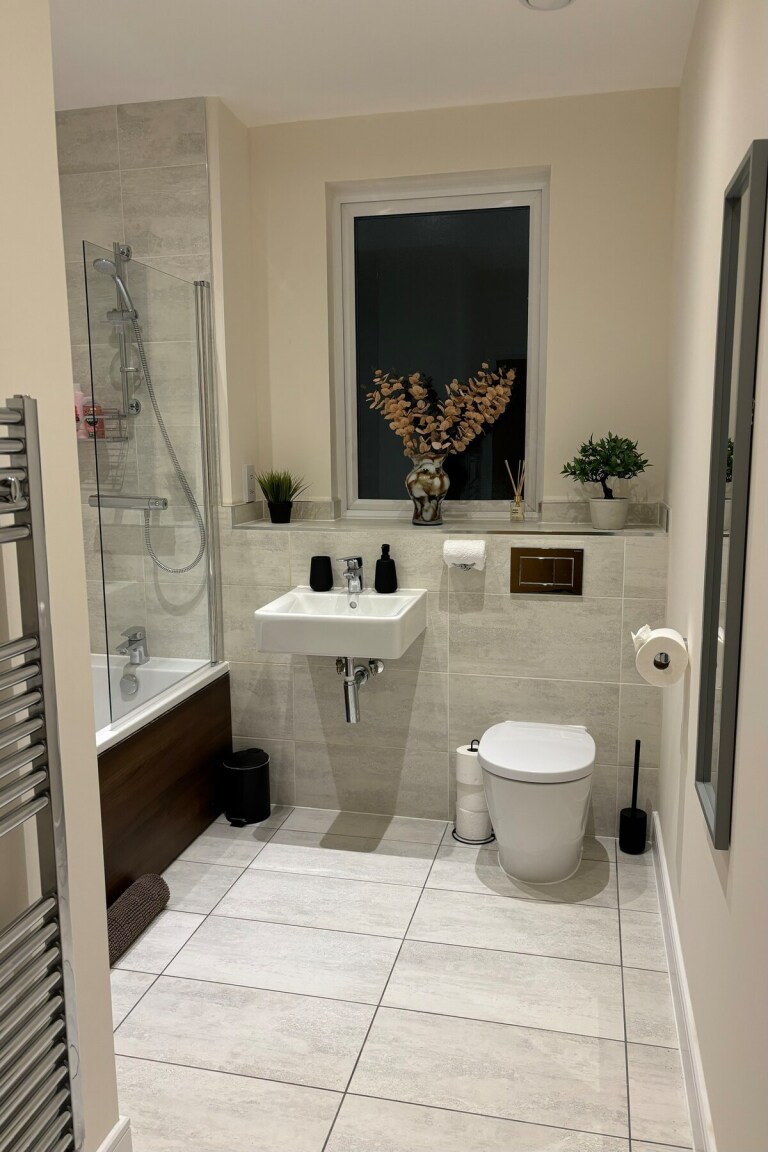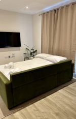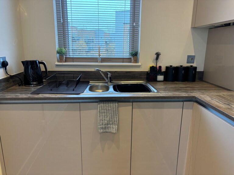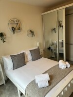 Modern and cozy, this one bedroom apartment in Addlestone is perfect for business or leisure. The space features a bright living area with a smart TV, a fully equipped kitchen, and a comfortable double bedroom with premium linens. Enjoy a sleek bathroom, high-speed Wi-Fi, and on-site parking. Located near the town center and train station, it offers easy access to London, Surrey’s countryside, and attractions like Thorpe Park and Windsor Castle. Book your stay today!